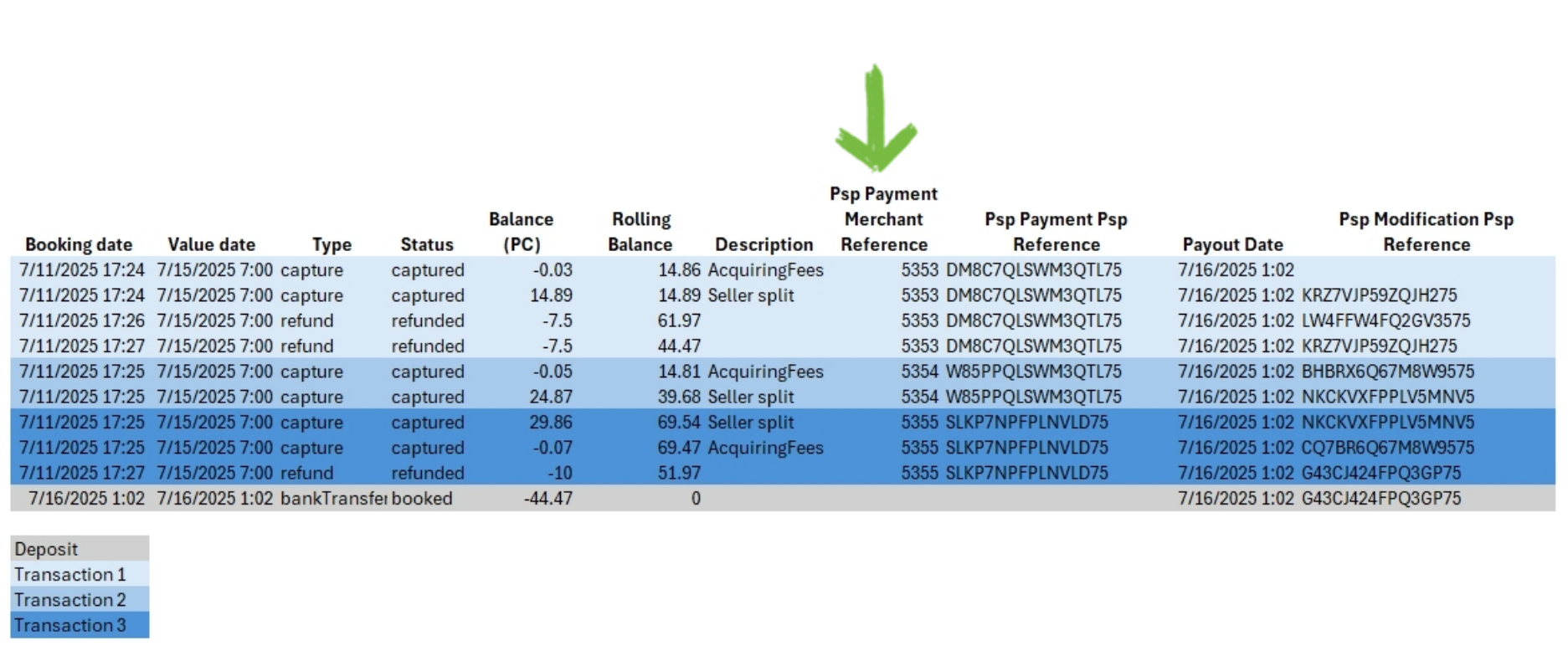- Sort your Payout report first by Booking date, and then add a secondary sort level for Psp Payment Merchant Reference.