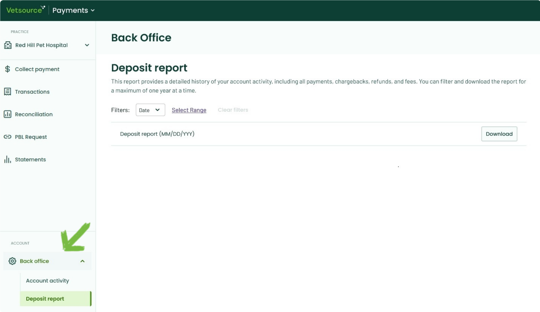 We've streamlined how you access your financial information. Now, all your back office payment data is right within the Vetsource Payments platform. That means no more jumping between different portals or remembering extra logins!