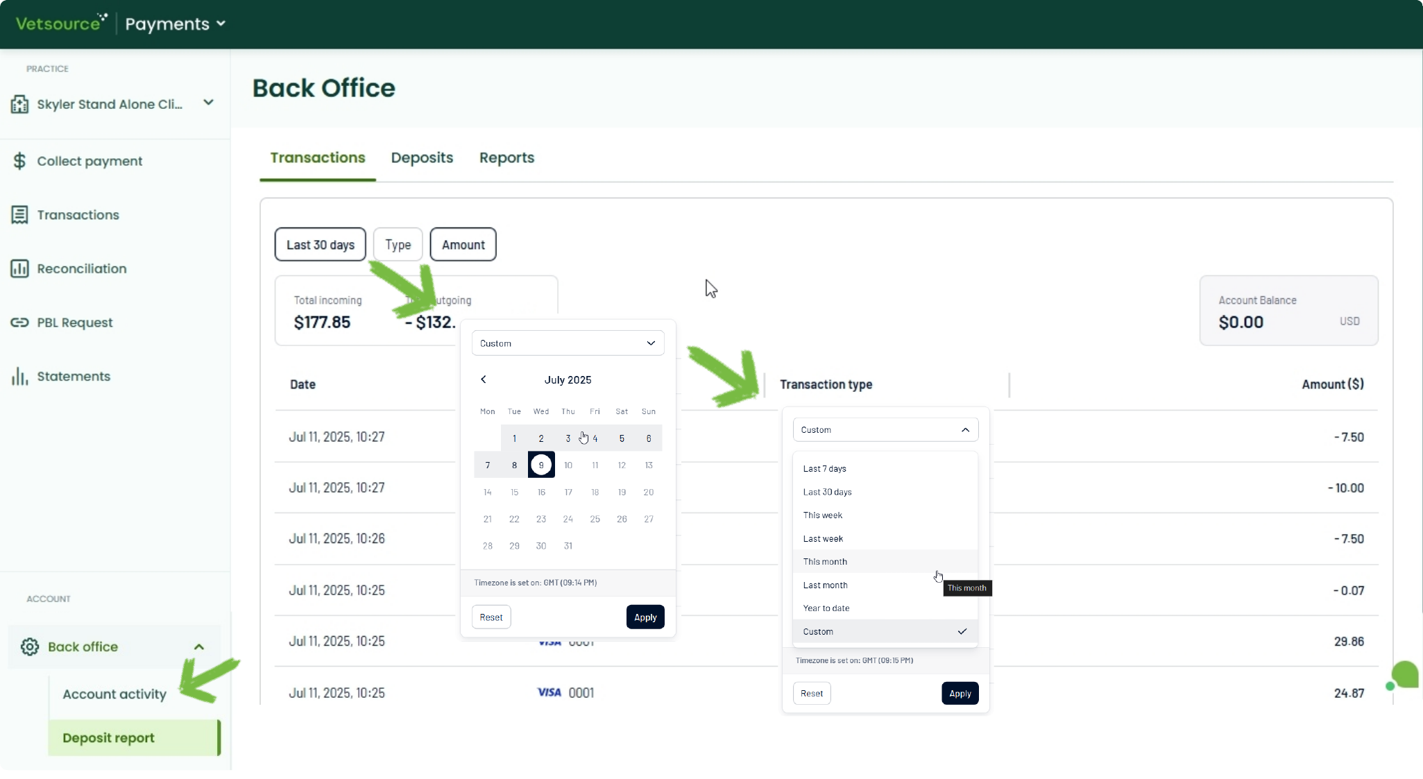 As your payment facilitator, Vetsource handles all money movement related to your account. This means any transfer you see represents the flow of funds managed by us—whether it's receiving customer payments, deducting fees, or sending money to your own bank account.